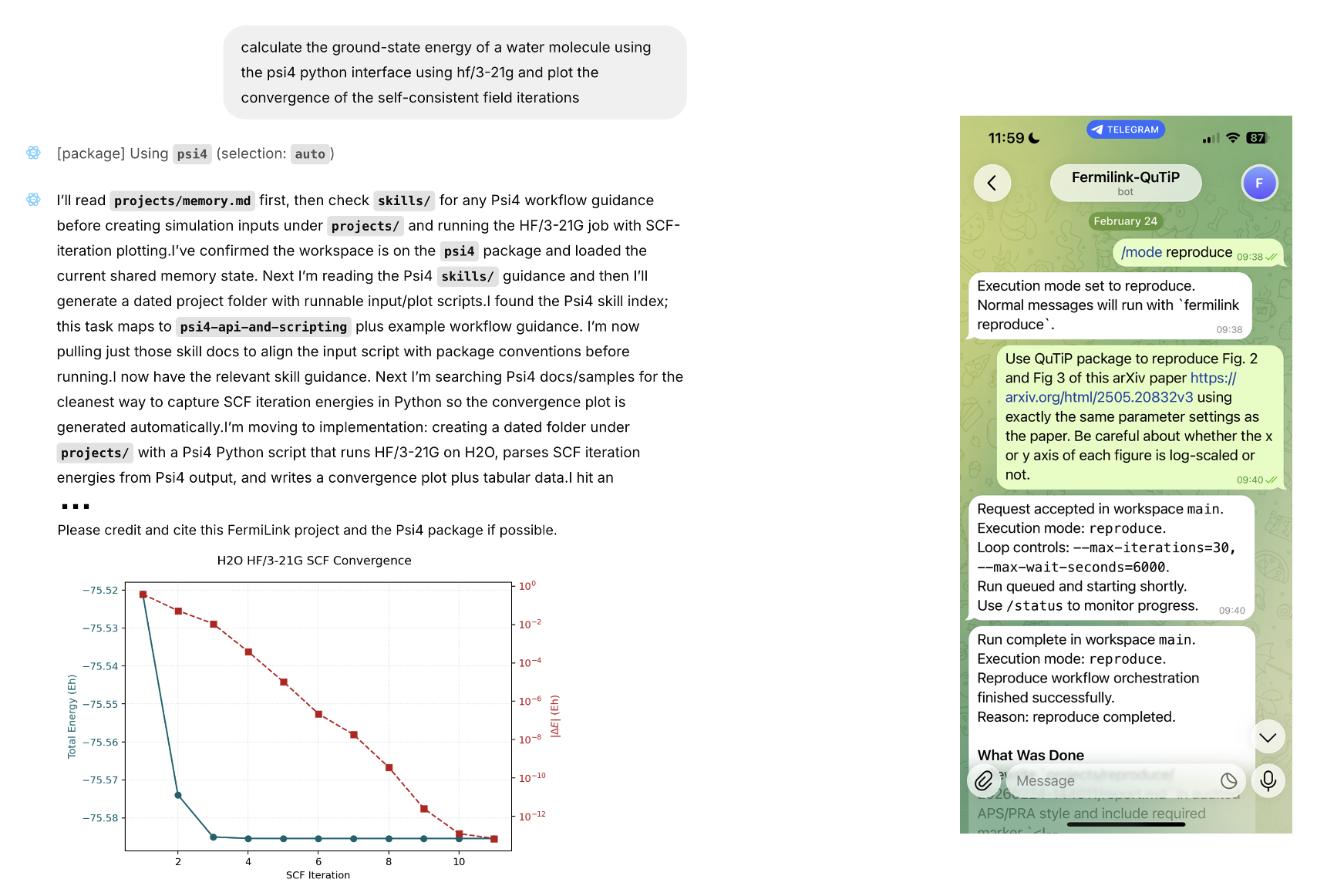 Apart from the command line tools, it includes a web UI for a ChatGPT-style chat interface, and a Telegram bot for remote control from your phone. Users can run autonomous scientific computing at any time, from any place.